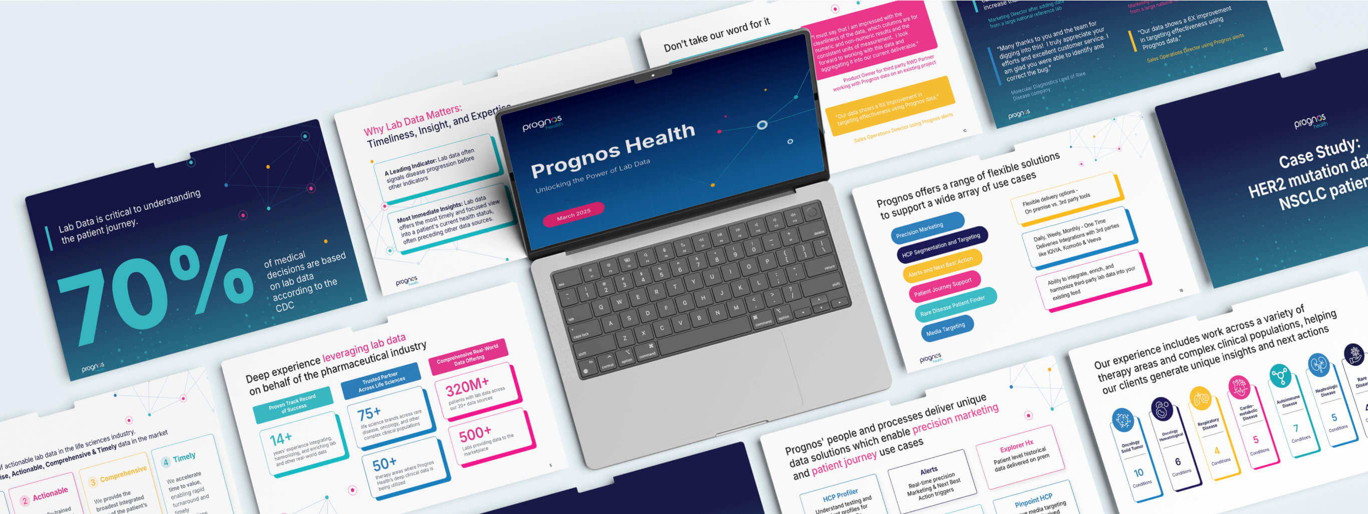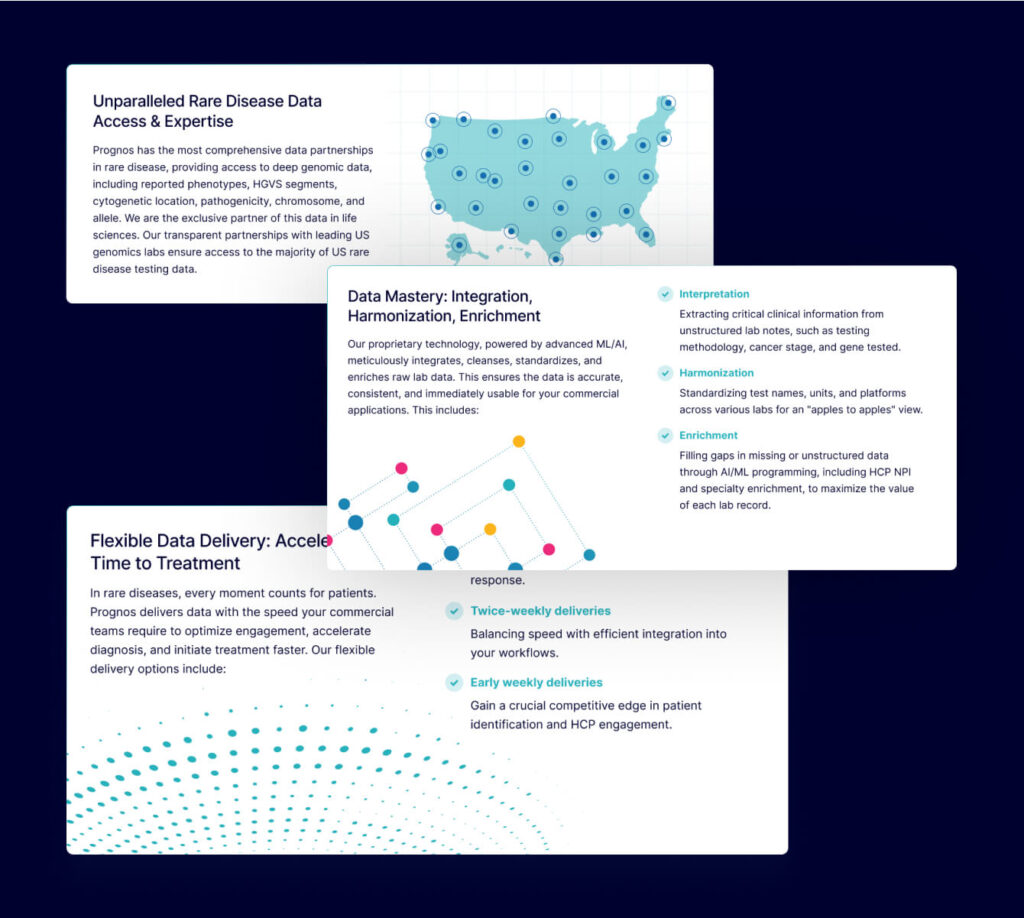 After applying a UX-focused redesign, traffic jumped 1,000%. The new pages weren’t just better looking; they performed. Across new capability decks, case studies, and product materials, the brand feels sharper, more consistent, and easier to trust. At a recent industry event, Prognos’ booth outperformed competitors by 4x in foot traffic, proof that good design makes people stop and pay attention.
